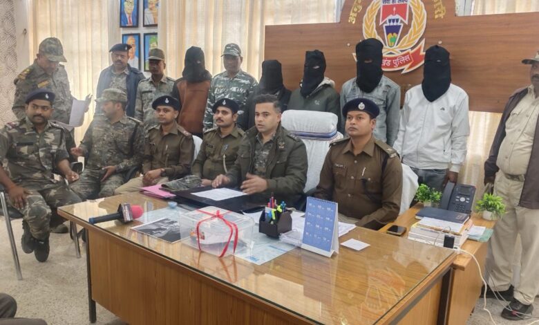 गिरफ्तारी व्यक्तियों में (01) रौशन कुमार सिंह, उम्र 22 वर्ष, पिता-रंजय सिंह, पता- महुअरी डिहरी, थाना- हुसैनाबाद, जिला-पलामू,(02) सत्यम कुमार सिंह, 21 वर्ष, पिता कुंदन सिंह, पता कजरात नवाडीह, थाना हुसैनाबाद जिला पलामू (03) लड्डु कुमार सिंह उर्फ मनीष कुमार सिंह, उम्र-25 वर्ष, पिता-राजेन्द्र कुमार सिंह, पता मझौली, थाना-हुसैनाबाद जिला-पलामू (04) दिपक कुमार सिंह, उम्र 23 वर्ष, पिता- दलभजन सिंह, पता-बिशुनुपुर, थाना-हुसैनाबाद, जिला-पलामू (05) चिकु उर्फ विकाश कुमार सिंह, उम्र-23 वर्ष, पिता सुरेन्द्र सिंह, ग्राम कुर्मीपुर थाना हुसैनाबाद, जिला पलामू के रहने वाले है। पकड़े गए व्यक्तियों के पास से पुलिस ने एक देशी कट्टा,दो जिंदा कारतूस जिसके पेंदे पर BMM KF लिखा हुआ,एक स्पलेडर प्लस मोटरसाईकिल सं० JH03 Q-6922 बरामद किया है।