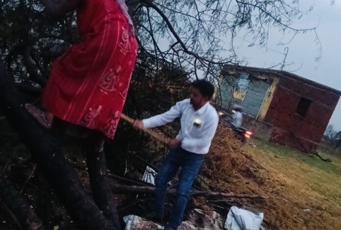आंधी-बारिश से सड़क पर गिरा पेड़, पिंटू रजक ने बहाल कराया आवागमन