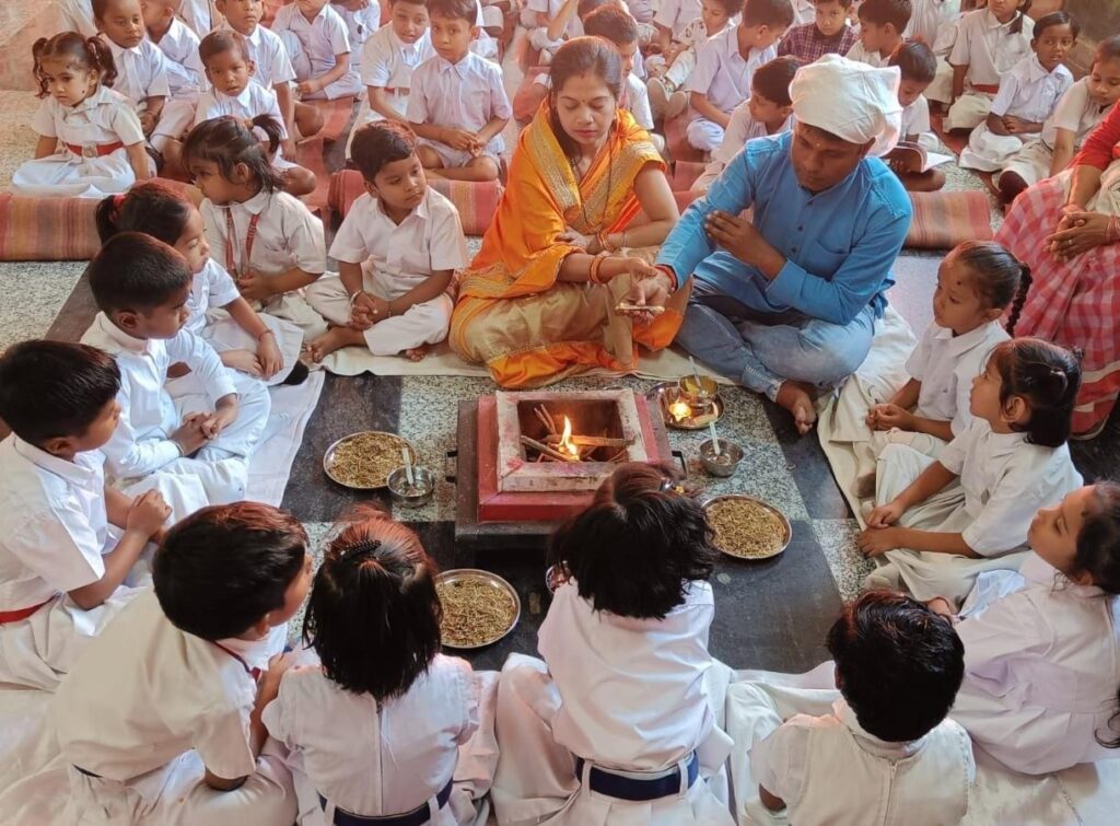 लातेहार: सरस्वती विद्या मंदिर, लातेहार में वंदना सहित अग्निहोत्र कार्यक्रम मंत्रोच्चार के साथ संपन्न हुआ। इस अवसर पर अरुण कक्षा के भैया अथर्व आर्या के अभिभावक सुजाता कुमारी एवं प्रभात कुमार उपस्थित रहे।कार्यक्रम की सराहना करते हुए अभिभावकों ने कहा कि यह विद्यालय प्रबंधन की एक सराहनीय पहल है, जो भैया-बहनों को शिक्षा के साथ-साथ संस्कारों से भी जोड़कर रखती है।इस अवसर पर प्रधानाचार्य उत्तम कुमार मुखर्जी, शिशु वाटिका प्रमुख गीता कुमारी, नीलम अंबष्ठा, पूनम गुप्ता, शिल्पा कुमारी, नीलम कुमारी, रूबी कुमारी सहित शिशु वाटिका की सभी दीदीजी उपस्थित रहीं।