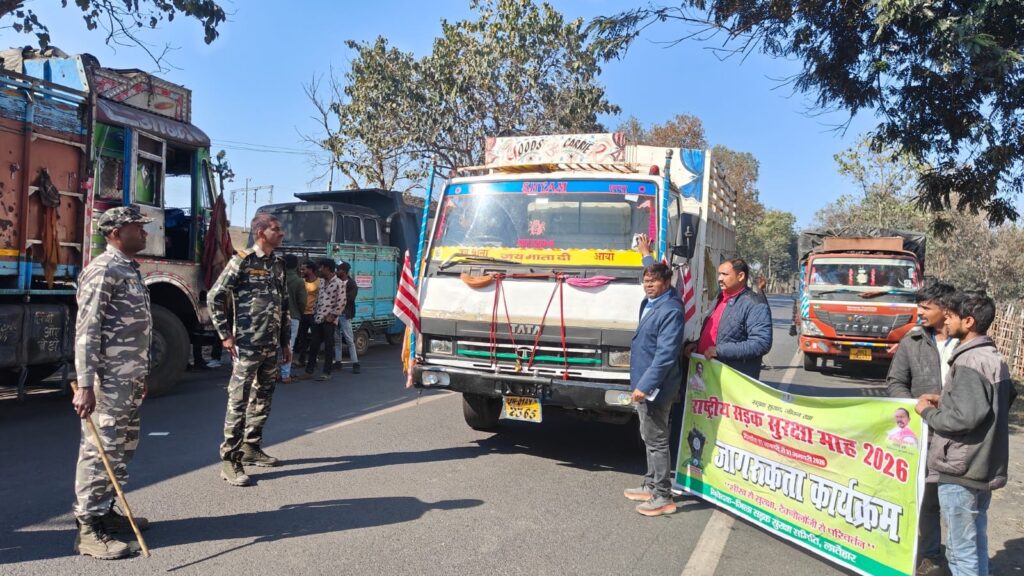 लातेहार: चंदवा थाना क्षेत्र एवं बालूमाथ थाना क्षेत्र अंतर्गत मक़ईयाटांड पुलिस पिकेट के समीप जिला परिवहन पदाधिकारी, लातेहार उमेश मंडल तथा मोटरयान निरीक्षक सुनील कुमार के नेतृत्व में सड़क सुरक्षा अभियान चलाया गया।अभियान के दौरान सड़क सुरक्षा से संबंधित पंपलेट्स का वितरण किया गया। साथ ही वाहनों से अतिरिक्त लाइट हटाने की कार्रवाई, “रफ्तार घटाओ, सुरक्षा बढ़ाओ” अभियान के तहत सुरक्षा टेप की इंस्टॉलेशन तथा ओवरलोडिंग के विरुद्ध कार्रवाई की गई।इस अवसर पर अधिकारियों द्वारा लोगों को पंपलेट देकर घूम-घूमकर यातायात नियमों के प्रति जागरूक किया गया, ताकि वाहन चालकों में यातायात नियमों की जानकारी का अभाव न रहे और वे नियमों का पालन करें।जिला परिवहन पदाधिकारी उमेश मंडल ने आमजनों से अपील की कि वाहन चलाते समय यातायात नियमों का अनिवार्य रूप से पालन करें। उन्होंने कहा कि दोपहिया वाहन चलाते समय हेलमेट अवश्य पहनें तथा चार पहिया एवं उससे अधिक पहिया वाहनों में सीट बेल्ट का प्रयोग करें। यातायात नियमों के पालन से सड़क दुर्घटनाओं जैसी दुर्भाग्यपूर्ण घटनाओं पर प्रभावी अंकुश लगाया जा सकता है।अभियान के दौरान कुल 134 वाहनों की जांच की गई, जिसमें 24 वाहनों का चालान किया गया। इस कार्रवाई में कुल ₹1,23,000 का जुर्माना वसूला गया, जबकि 1 वाहन को जब्त किया गया।प्रशासन द्वारा आमजनों को लगातार सड़क सुरक्षा के प्रति जागरूक किया जा रहा है एवं पंपलेट्स का वितरण भी किया जा रहा है।