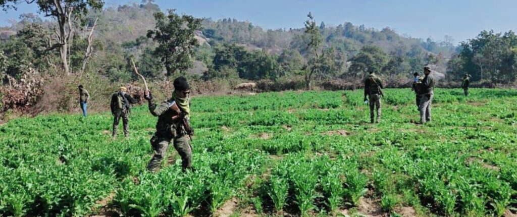 दूसरा छत्तरपुर थाना क्षेत्र अंतर्गत ग्राम–चिपो के जंगली क्षेत्र में अवैध रूप से लगी लगभग 03 एकड़ अफीम पोस्ता की खेती को भी विधिवत विनष्ट किया गया।