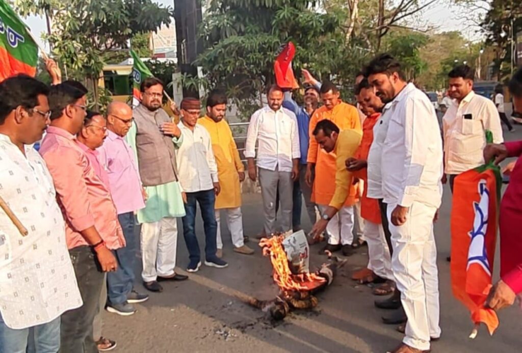 पलामू जिला भारतीय जनता युवा मोर्चा ने फूंका मुख्यमंत्री हेमंत सोरेन का पुतला