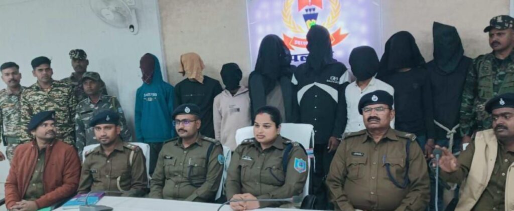 Palamu : पलामू पुलिस ने अवैध हथियार के साथ 10 अपराधियों को गिरफ्तार किया है। मिली जानकारी के अनुसार मेदिनीनगर सदर थाना क्षेत्र से आठ अपराधियों को गिरफ्तार किया है।एसपी रिष्मा रमेशन के निर्देश पर सदर थाना प्रभारी लाल जी ने एक टीम गठित कर कारवाई करते हुए सभी अपराधियो को गिरफ्तार किया है।पत्रकारों को जानकारी देते हुए पलामू एसपी रिष्मा रमेशन ने बताया कि कुख्यात अपराधी सुजीत सिन्हा ने प्रिंस खान के साथ हाथ मिलाया है ओर दोनो एक साथ अब काम करेंगे। वही सुजीत सिन्हा और प्रिंस खान के निर्देश पर गिरफ्तार आठो अपराधी सिंगरा व चियांकी में NHAI के चल रहे फोरलेन निर्माण कार्य स्थल पर गोलीबारी की घटना को अंजाम देने के फ़िराक में था। इसी क्रम में पुलिस ने अमित चौधरी, आकाश शुक्ला,कौशल पासवान,नीरज चन्द्रवंशी, छोटन पासवान, अख्तर अंसारी , अविनाश गिरी और बॉबी कुमार को गिरफ्तार किया है गिरफ्तार अपराधियो के पास से पुलिस ने दो देशी पिस्टल, दो देशी कट्टा, चार मैगजीन,1 जिंदा गोली, साथ मोबाइल, तीन बाइक और दहशत फैलाने के लिए एक पर्चा बरामद किया है । एसपी रिष्मा रमेशन ने प्रेसवार्ता कर बताया को अमित चौधरी, आकाश शुक्ला व नीरज चन्द्रवंशी पूर्व में भी जेल जा चुके है और जेल से बाहर निकलने के बाद फिर से इस तरह की घटना को अंजाम देने का प्लान बना रहा था वर्तमान में सुजीत सिन्हा गैंग को सारे कार्यो को कुबेर नाम से सन्चालित किया जा रहा है।