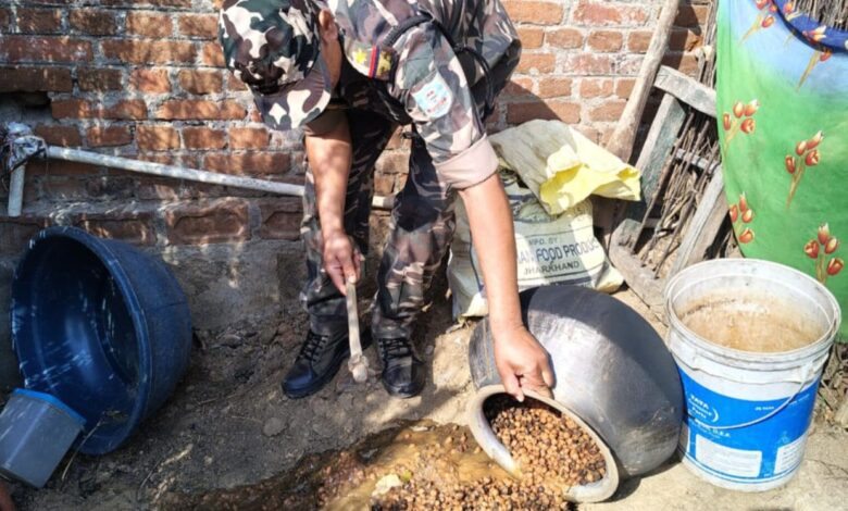 पलामू पुलिस ने किया 1675 किलोग्राम जावा महुआ एवं 45 लीटर अवैध शराब नष्ट