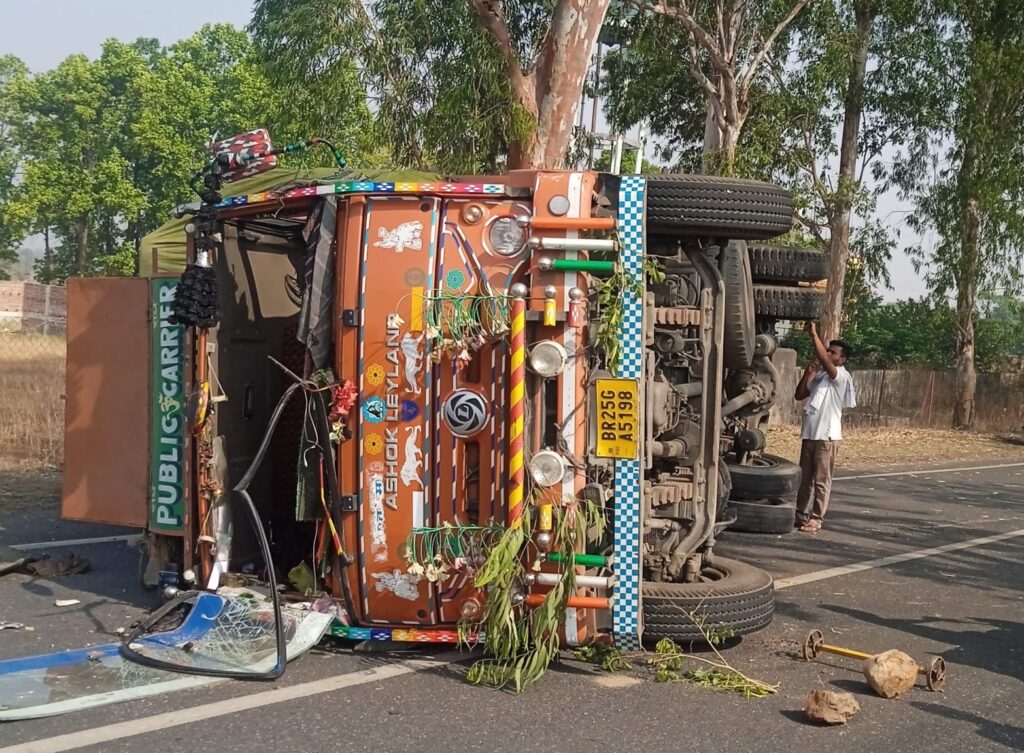 बारियातू: प्रखंड क्षेत्र के नचना स्थित आयुष्मान आरोग्य मंदिर के सामने रांची-चतरा मुख्य सड़क (एनएच-22) पर एक छह चक्का मालवाहक (छोटा ट्रक) अनियंत्रित होकर पलट गया।प्राप्त जानकारी के अनुसार, वाहन संख्या BR 25G/A 5198 मुजफ्फरपुर से रांची की ओर पार्सल लेकर जा रहा था। इसी दौरान देर रात लगभग 12 बजे नचना स्थित आयुष्मान आरोग्य मंदिर के समीप सामने से आ रहे कोयला लदे हाईवा (वाहन संख्या JH 02B/06125) ने साइड से टक्कर मार दी।टक्कर के बाद मालवाहक वाहन अनियंत्रित होकर सड़क पर पलट गया, जिससे वाहन का केबिन पूरी तरह क्षतिग्रस्त हो गया। हालांकि, चालक और उपचालक दोनों सुरक्षित बच निकले।घटनास्थल पर मौजूद उपचालक और वाहन मालिक ने बताया कि चालक को हल्की चोटें आई हैं, जिसका सामुदायिक स्वास्थ्य केंद्र में प्राथमिक उपचार कराया गया, जबकि उपचालक पूरी तरह सुरक्षित है।घटना की सूचना मिलते ही बारियातू पुलिस मौके पर पहुंची और आगे की कार्रवाई में जुट गई है।