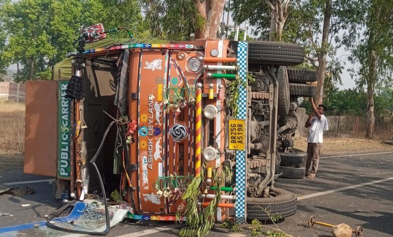 बारियातू में आयुष्मान आरोग्य मंदिर के पास मालवाहक वाहन पलटा
