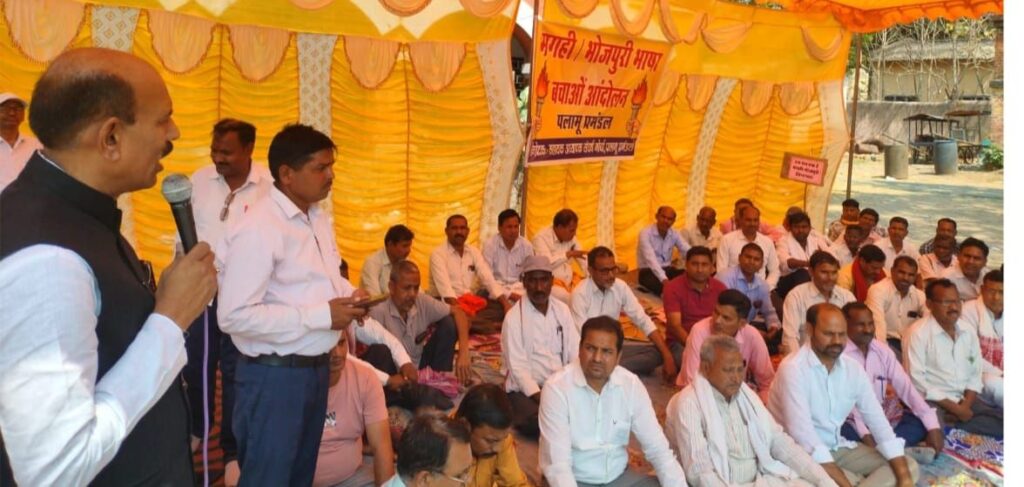 धरना में पूर्व मंत्री केएन त्रिपाठी ने हर हालत में मगही-भोजपुरी भाषा को बचाने का आह्वाहन किया। उन्होंने कहा कि मगही और भोजपुरी को बचाने के लिए अंतिम दम तक लडूंगा। कम्युनिस्ट पार्टी के जिला सचिव नेता रुचिर तिवारी ने मगही भोजपुरी को बचाने को लेकर समर्थन दिया। भाजपा जिला अध्यक्ष अमित तिवारी ने कहा कि मगही और भोजपुरी हमारी मान सम्मान और पहचान हैं। हेमंत सोरेन जी जल्द होश में आ जाएं नहीं तो जोरदार आंदोलन शुरू किया जाएगा।वहीं भाजपा के ही भीष्म चौरसिया और जिला परिषद सदस्य रामलव चौरसिया ने आंदोलन के समर्थन में अपना विचार व्यक्त किया। धरना के बाद शहर भ्रमण किया गया। कचहरी से तीनकोनिया गैरेज होते हुए कोयल होटल मोड़ से पंचमुहान के बाद छहमुहान पर कार्यक्रम को समाप्त किया गया। मौके पर बिनोद तिवारी ने कहा कि आज का आन्दोलन शुरुआत है। आगे आक्रामक आंदोलन चलाया जाएगा, जिसमें मशाल जुलूस, पुतला दहन किया जाएगा।