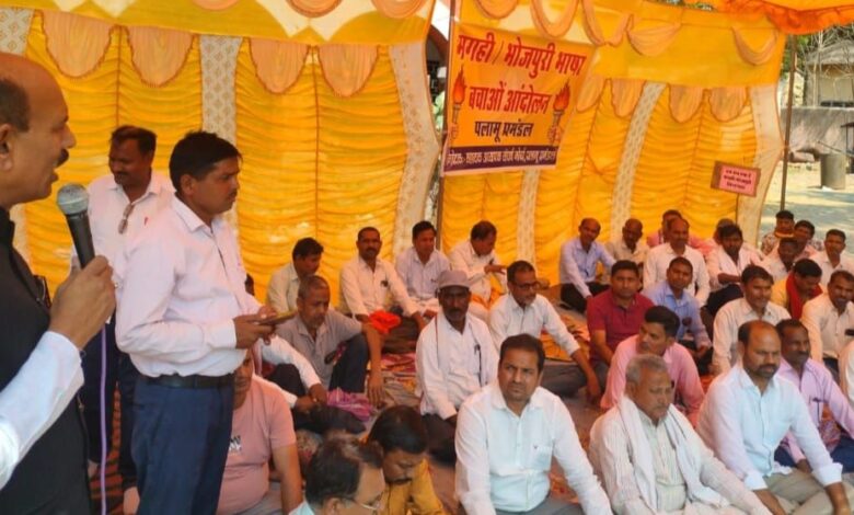 Palamu : समाहरणालय के सामने सहायक अध्यापक संघर्ष मोर्चा के तत्वावधान में मगही-भोजपुरी भाषा बचाओ अभियान के तहत शुक्रवार को एक दिवसीय धरना दिया गया।कार्यक्रम की अध्यक्षता मोर्चा के राज्य सदस्य बिनोद तिवारी ने की, जबकि संचालन अमलेश कुमार चौरसिया और अनुज दुबे ने किया। धरना में बड़ी संख्या में सहायक अध्यापकों ने भाग लिया।