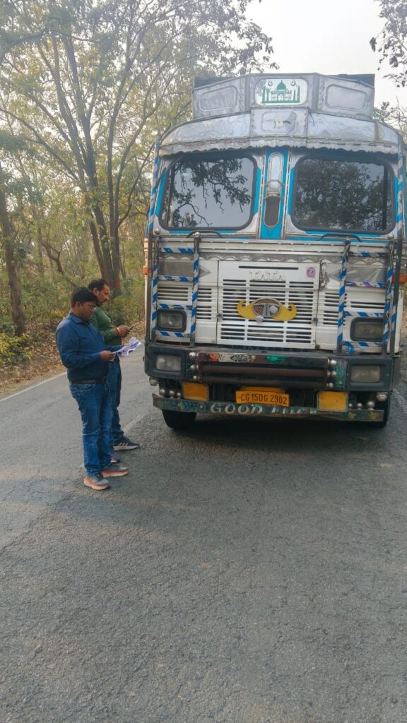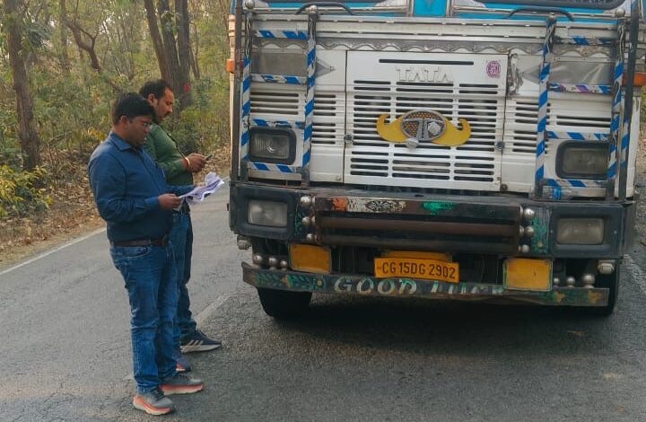 मनिका में भारी वाहनों की जांच, 6 वाहनों का चालान; 42,500 रुपये जुर्माना वसूला
