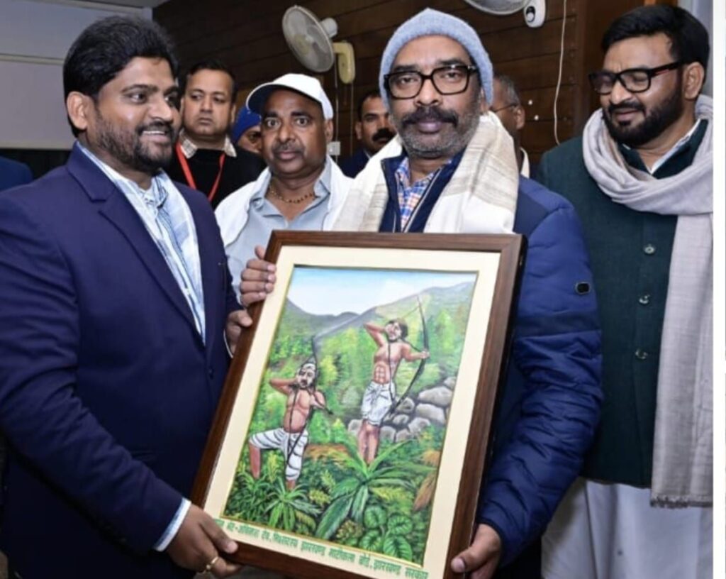 Ranchi : नए साल के शुभ अवसर पर झारखंड के यशस्वी मुख्यमंत्री हेमंत सोरेन से झारखंड मुक्ति मोर्चा के युवा ब्रिगेड और सेंट मारिया अमावस्या स्कूल के डायरेक्टर अविनाश देव ने शिष्टाचार मुलाकात की। इस मुलाकात के दौरान श्री देव ने उन्हें नववर्ष की हार्दिक बधाई दी और उनका आशीर्वाद प्राप्त किया। उन्होंने 1857 के अमर शहीद, झारखंड की माटी के वीर योद्धा नीलांबर-पीतांबर की जयंती के अवसर पर मुख्यमंत्री को उनकी क्ले (मिट्टी) से निर्मित तस्वीर और अंगवस्त्र भेंट कर सम्मानित किया। मुलाकात के दौरान मुख्यमंत्री ने अत्यंत उत्साहजनक बातें कहीं। मुख्यमंत्री ने अविनाश देव से कहा, “25 साल के युवा झारखंड को गति देने के लिए तुम जैसे ऊर्जावान और शिक्षाविद नौजवानों की जरूरत है। दिशोम गुरुजी के आशीर्वाद और उनके बनाए मार्ग पर चलते हुए हमें मिलकर झारखंड को प्रगति की नई ऊंचाइयों पर ले जाना है।” अविनाश देव ने मौके पर कहा, मुख्यमंत्री के इन शब्दों ने जनसेवा और राज्य के विकास के प्रति मेरे संकल्प को और भी सुदृढ़ कर दिया है। अविनाश देव ने कहा कि हमने संकल्प लिया कि नीलांबर-पीतांबर के सपनों के झारखंड को साकार करने के लिए हम उनके विचारों पर निरंतर चलते रहेंगे।