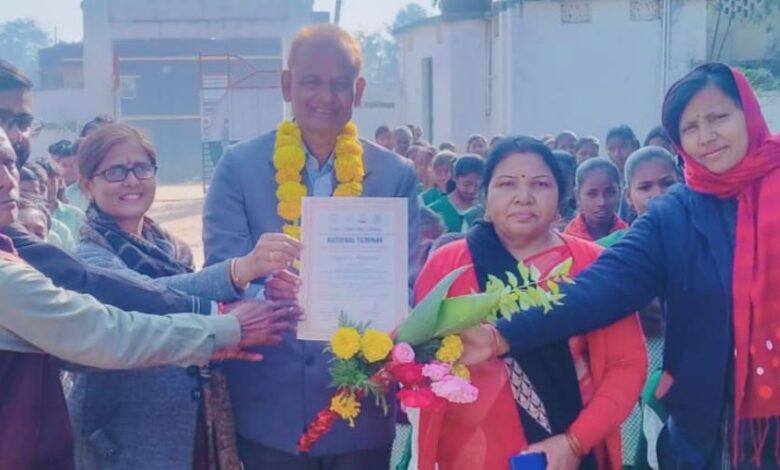 राष्ट्रीय सेमिनार में शोध पत्र की प्रस्तुति पर शिक्षक परशुराम तिवारी को विद्यालय में किया गया सम्मानित
