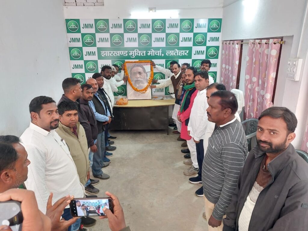 लातेहार: जिला मुख्यालय लातेहार स्थित झारखंड मुक्ति मोर्चा (झामुमो) के जिला कार्यालय में आज दिन रविवार को जिलाध्यक्ष लाल मोतीनाथ शाहदेव के निर्देशानुसार दिशोम गुरु शिबू सोरेन की 82वीं जयंती धूमधाम से मनाई गई। कार्यक्रम में झामुमो के केंद्रीय उपाध्यक्ष एवं पूर्व मंत्री वैद्यनाथ राम मुख्य रूप से उपस्थित रहे।कार्यक्रम की शुरुआत गुरु जी के चित्र पर माल्यार्पण एवं पुष्पांजलि अर्पित कर की गई। इस दौरान उपस्थित नेताओं एवं कार्यकर्ताओं ने “दिशोम गुरु शिबू सोरेन अमर रहें” के नारे लगाए।