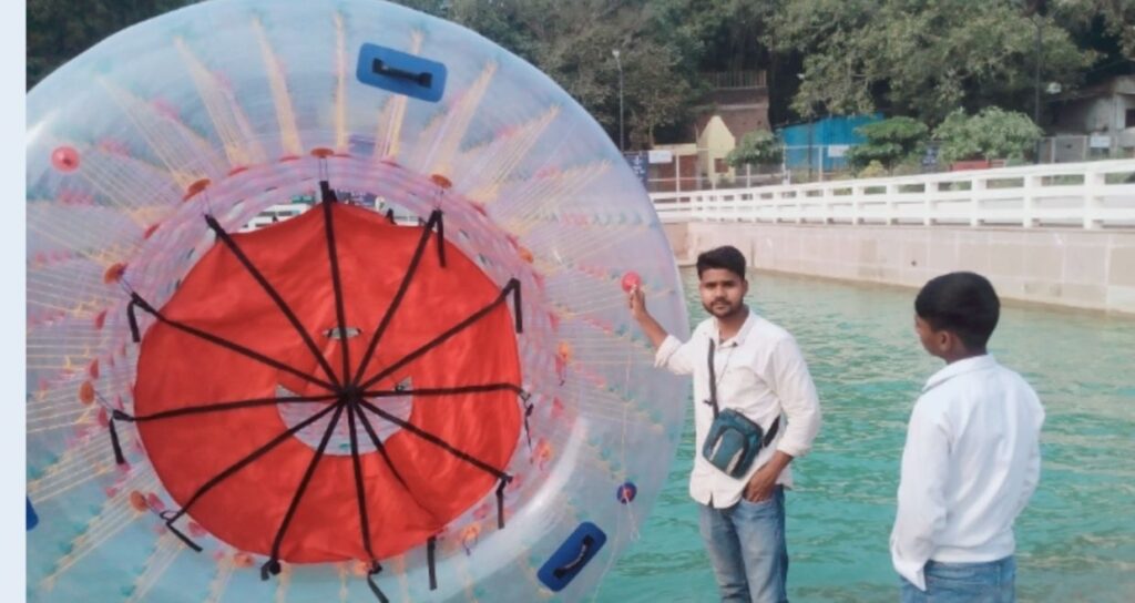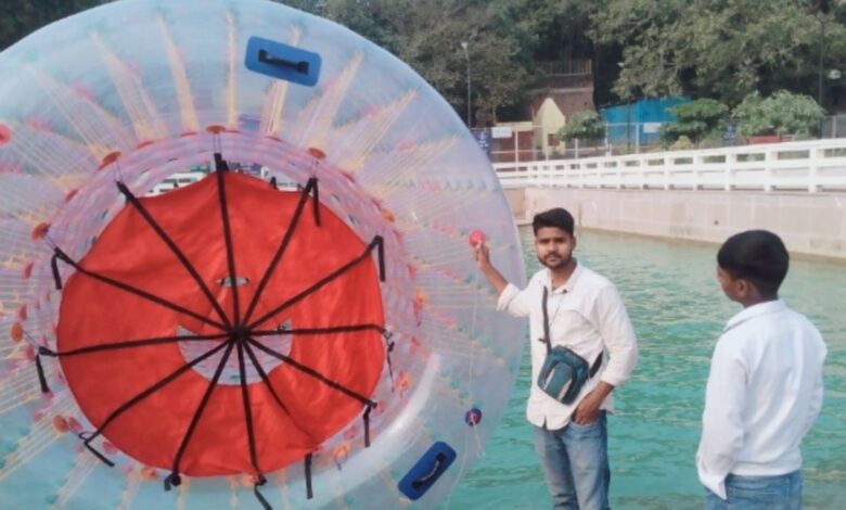 वाराणसी में नमो घाट पर वाटर बैलून प्ले ने पर्यटकों को किया आकर्षित