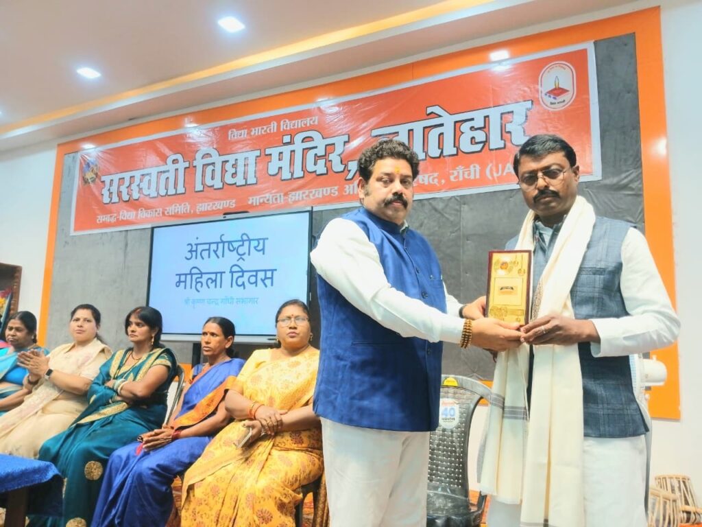लातेहार:अंतर्राष्ट्रीय महिला दिवस पर मातृशक्ति को नमन करते हुए सरस्वती विद्या मंदिर धर्मपुर पथ लातेहार के डॉ कृष्ण चंद्र गांधी सभागार में एक भव्य कार्यक्रम आयोजित किया गया।कार्यक्रम का प्रारंभ वार्ड पंचायत अध्यक्ष एवं नवनियुक्त महिला वार्ड पार्षदों सहित विद्यालय समिति, प्रधानाचार्य के द्वारा संयुक्त रूप से दीप प्रज्जवलन के साथ हुआ।महिला दिवस पर विषय प्रवेश प्रधानाचार्य उत्तम कुमार मुखर्जी के द्वारा किया गया।कार्यक्रम पर प्रस्तावना व्यक्त करते हुए विद्यालय प्रबंधन समिति के सचिव राजीव रंजन पांडेय ने बच्चों के विकास में माताओं के विशेष योगदान को रेखांकित किया।कार्यक्रम पर मातृ भारती अध्यक्षा रितु रानी पांडेय ने महिला शब्द के अर्थ को विस्तार से बताएं।