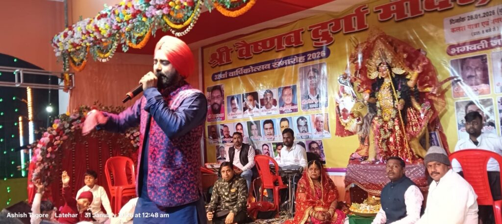 गायिकाओं में चंचला और वीणा कौर ने भी अपने भजनों से श्रद्धालुओं को खुब झूमाया।जागरण में सोनभद्र यूपी के दिवाकर एंड मंडली के द्वारा राधा कृष्‍ण, शिव तांडव, हनुमान व मां दुर्गा की आकर्षक झांकियां निकाली गयी।मौके पर संरक्षक महेंद्र प्रसाद गुप्‍ता, अभिनंदन प्रसाद, सुरेंद्र प्रसाद शौंडिक, विनोद कुमार साहू, अध्‍यक्ष राजेश कुमार गुप्‍ता (भोला), उपाध्‍यक्ष श‍शिभूषण पांडेय, कन्‍हाई प्रसाद अग्रवाल, बद्री प्रसाद, आशीष टैगोर, राजू रंजन सिंह, राजू प्रसाद, ओमप्रकाश, रंजीत कुमार, रविंद्र प्रजापति, उज्‍जवल साहू, आकाश कुमार टोनू व परितोष ठाकुर आदि मौजूद थे।32 वें वार्षिकोत्‍सव के मौके पर तन मन व धन से सहयोग करने के लिए श्री वैष्‍णव दुर्गा मंदिर समिति ने नगर वासियों का आभार प्रकट किया है।समिति के अध्‍यक्ष राजेश कुमार गुप्‍ता ने कहा कि सामुहिक सहयोग के बिना कोई कार्य पूरा नहीं होता है।उन्‍होने समिति के अन्‍य सदस्‍य व कार्यकर्ताओं को भी इस सफल आयोजन पर साधुवाद दिया।
