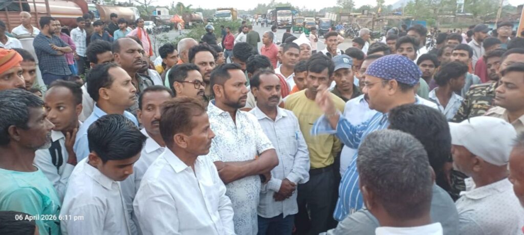जाम स्थल पर ग्रामीणों का नेतृत्व जिला पार्षद विजय रविदास,वरीय भाजपा नेता सुनील पांडेय,
