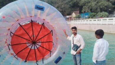 वाराणसी में नमो घाट पर वाटर बैलून प्ले ने पर्यटकों को किया आकर्षित