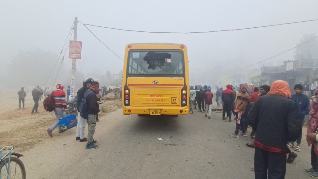 Palamu : पलामू जिले के हुसैनाबाद थाना क्षेत्र के जपला–छतरपुर मुख्य सड़क पर गम्हरिया गांव के पास स्कूल बस और बाइक की सोमवार को टक्कर हो गई। हादसे में बाइक सवार युवक धर्मेन्द्र यादव, निवासी छपारदग सिकनी की मौत हो गई। स्थानीय लोगों ने उसे अस्पताल पहुंचाया, जहां डॉक्टरों ने मृत घोषित कर दिया। घटना से आक्रोशित लोगों ने सड़क जाम कर दिया, मौके पर थाना प्रभारी सोनू चौधरी पहुंचे। बस में सवार सभी बच्चे सुरक्षित बताए जा रहे हैं।