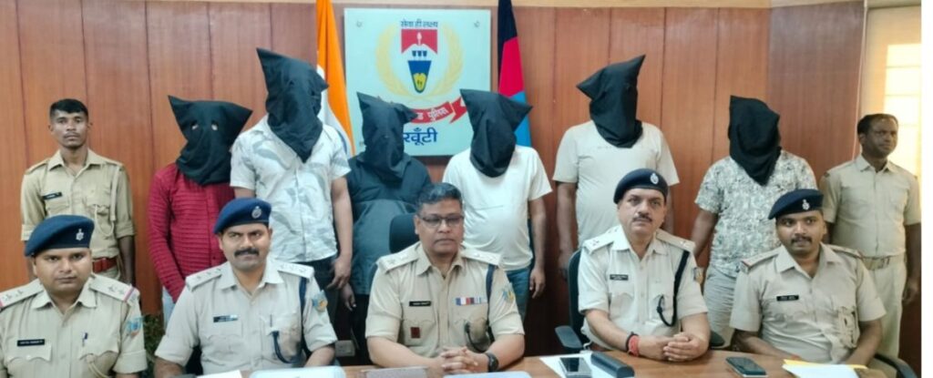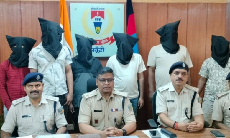 Khunti : पुलिस ने प्रतिबंधित उग्रवादी संगठन पीपुल्स लिबरेशन फ्रंट ऑफ इंडिया (पीएलएफआई) से जुडे छह उग्रवादियों को गिरफ्तार किया है। पुलिस अधीक्षक को मिली गुप्त सूचना के आधार पर शुक्रवार देर शाम खूंटी थाना क्षेत्र की तजना नदी के समीप नहर किनारे की गई छापेमारी में प्रतिबंधित नक्सली संगठन पीएलएफआई से जुड़े छह आरोपितों को गिरफ्तार किया गया। गिरफ्तार आरोपितों में विजय भोक्ता (26), धीरज कुमार (22), अभिषेक कुमार (29), शुभम कुमार पोद्दार (25), निमिष गोप उर्फ हनी (30) और रांची के पोखर टोली, मिलन चौक, हिनू निवासी राम अयोध्या शर्मा उर्फ राजा शर्मा (43) शामिल हैं।
